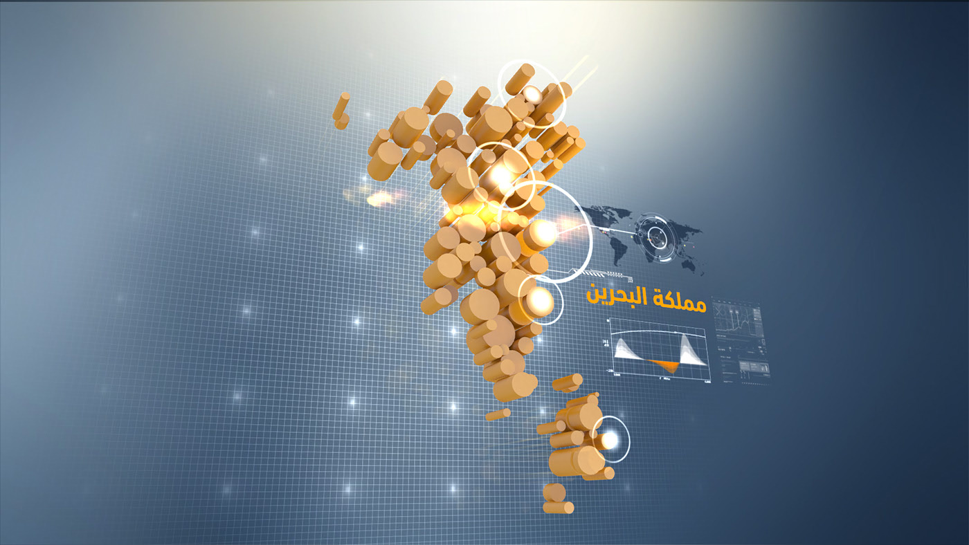 Challenge: Redesign the Business Week program graphics for Bahrain TV, where the opener intro needed to transition seamlessly into the live graphic placeholders for data, headlines, and visuals. A critical requirement was to incorporate a stylized Bahrain map as a central graphic element, ensuring it featured prominently in both the opening sequence and throughout the show’s live graphics, while maintaining a continuous, polished on-air flow.